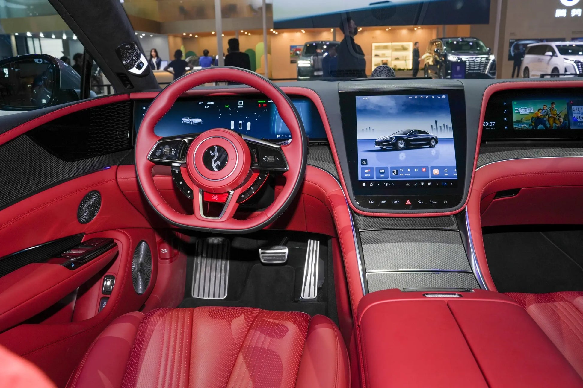 I test-drove the Yangwang U7, specifically the pure electric four-wheel drive five-seat version. It was quite hard to book; they said there aren't many test-drive cars available right now, so you have to take turns. Exterior and Interior: The overall design is very good-looking, though the front face is a bit lacking. The car looks really big. I especially like the red interior; when the sunlight hits it, it's very vibrant, and it doesn't look dirty even after looking at it for a long time. The seats are extremely comfortable with many adjustability options, even the lumbar side support can be adjusted. Most of the touchable areas are leather, with plenty of padding, giving a great texture, except the steering wheel is a bit hard. The center console design is also quite thoughtful. The seat ventilation is very cool. Infotainment System: Just average, and the UI isn't nice either, but it has all the necessary functions. Yi Sifang: Maintaining my evaluation from Denza - awesome👍. Sound Insulation: Excellent. Sound System: The salesperson told me the infotainment system wasn't connected to the internet, so I couldn't listen to it. I tried the U8's sound system, and it was fantastic. Both the bass and vocals maintained a very clear and detailed level, the overall soundstage was centered, and the sound was loud. I think the U7's won't be bad either. Chassis: This one is equipped with Yun Nian Z. The salesperson said there's no air suspension, just pure electromagnetic suspension, which gave me a different feeling. I test-drove it for a relatively long time. Even in the most comfortable mode, the chassis still has road feel, allowing you to sense small road vibrations, but they are handled quite cleanly, so I wouldn't call it bumpy, just road feel. The overall body follow-through is also very good, without the那种 sluggishness of a large car. The most surprising part was going over speed bumps; it can completely suppress the颠簸, with only a slight vibration when first rolling over them. The U7 also performs very well in terms of body roll; roll in all aspects is minimal, and when the negative roll mode is activated, you can't feel it at all. It also doesn't nose-dive during hard braking. Handling: In sport mode, during quick lane changes, you can feel the U7's steering is very precise, with quick response and little play. Importantly, the seats have active side support, which can accurately and quickly support passengers during aggressive maneuvers to prevent them from swaying around when changing lanes. However, in comfort mode, the steering wheel, brakes, and other aspects feel a bit too light; in other words, I feel there's a bit too much "floating" sensation. In sport mode, the brakes are stiffer with little play, the throttle is responsive, and acceleration is linear. The centering feel is also excellent. A U-turn takes about one parking space, so the turning radius isn't large. For a large car, it's very good, except that judging distances when parking is a bit tricky. Overall, the Yangwang U7 has no real缺点. Except for the infotainment system, everything else can be said to be perfect. Of course, I don't really like its comfort mode; I prefer sport mode as it's not as soft or light overall. I wish the U7 great sales!